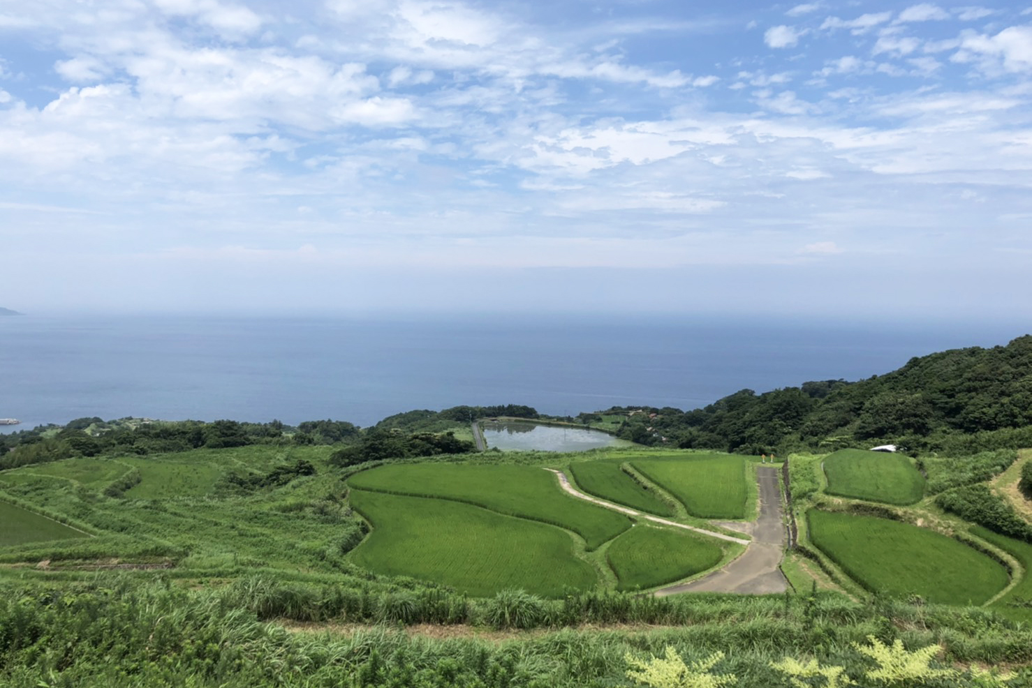 The terraced rice fields in the Higashi Gobata district of Aburaya, Nagato City, selected as one of the "100 best terraced rice fields in Japan," attract many photographers every year during the season from late May to early June as a spot where the setting sun of the Sea of Japan and countless fishing fires can be seen simultaneously.