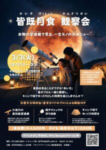 長門市油谷の伊上海浜公園オートキャンプ場にて、皆既月食観察会が開催されます。