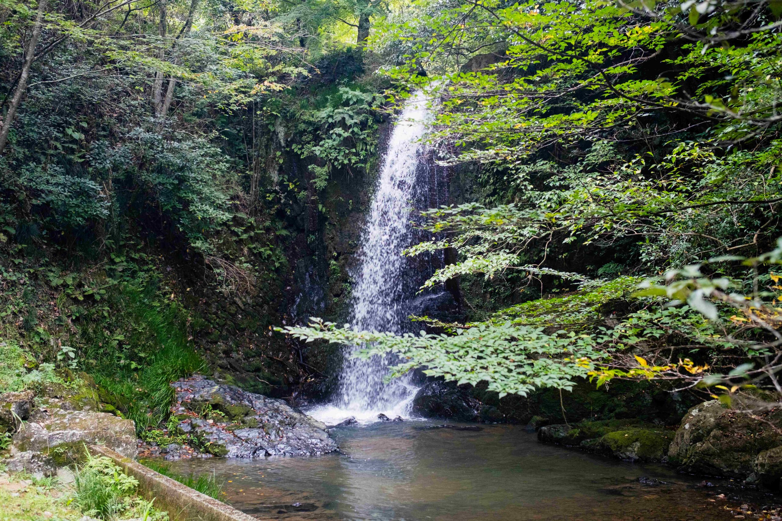 「千代の滝」は、高さ13m、幅3mの長門市最大の滝。遊歩道から降りることができ、特に新緑や紅葉の時期がおすすめです。