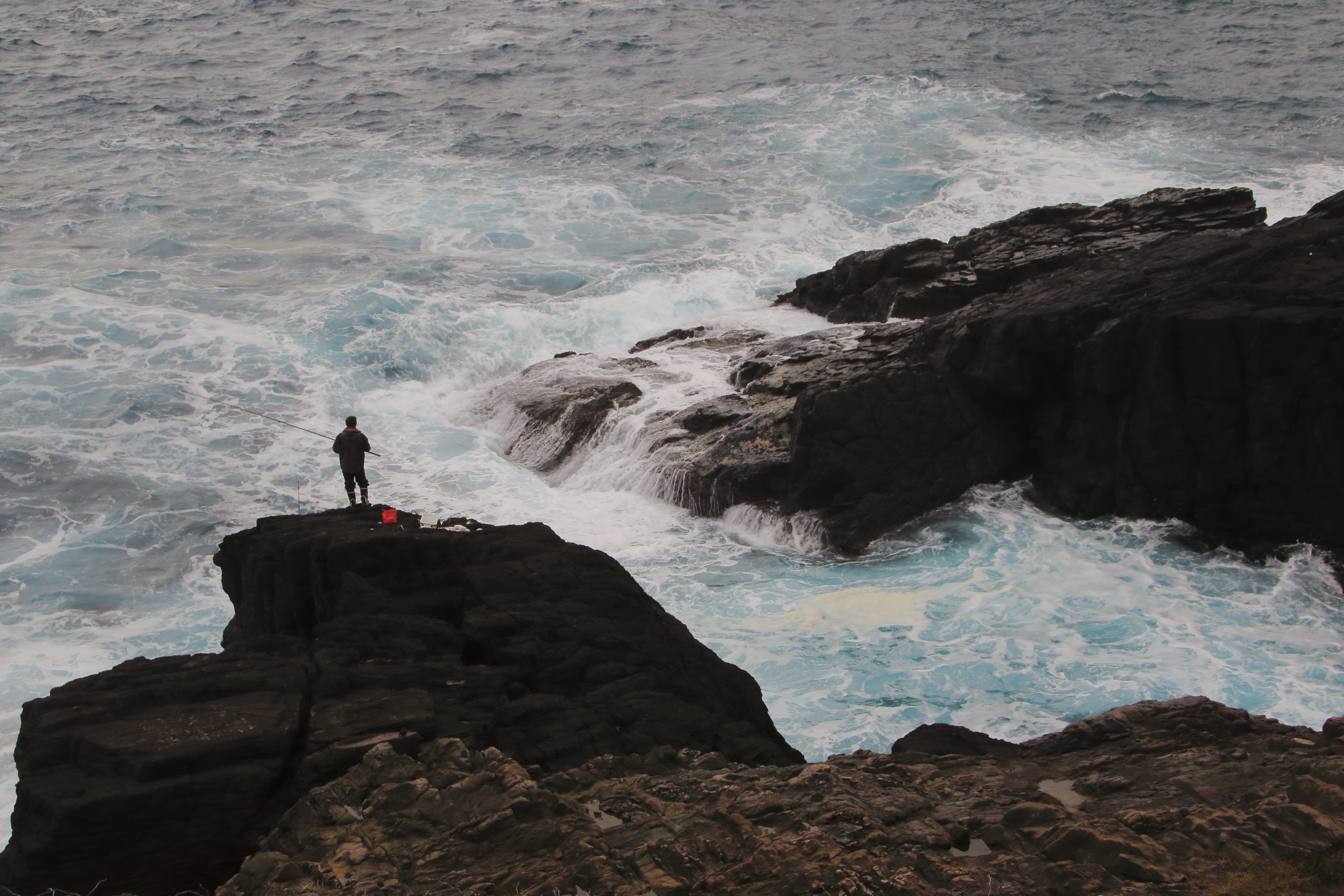 북풍이 불고 파도가 덮쳐버릴 것 같은 가운데, 낚시를 즐기고 있는 모습에 놀라움이었습니다.
