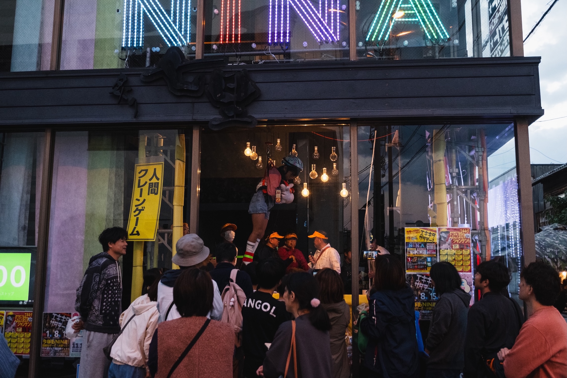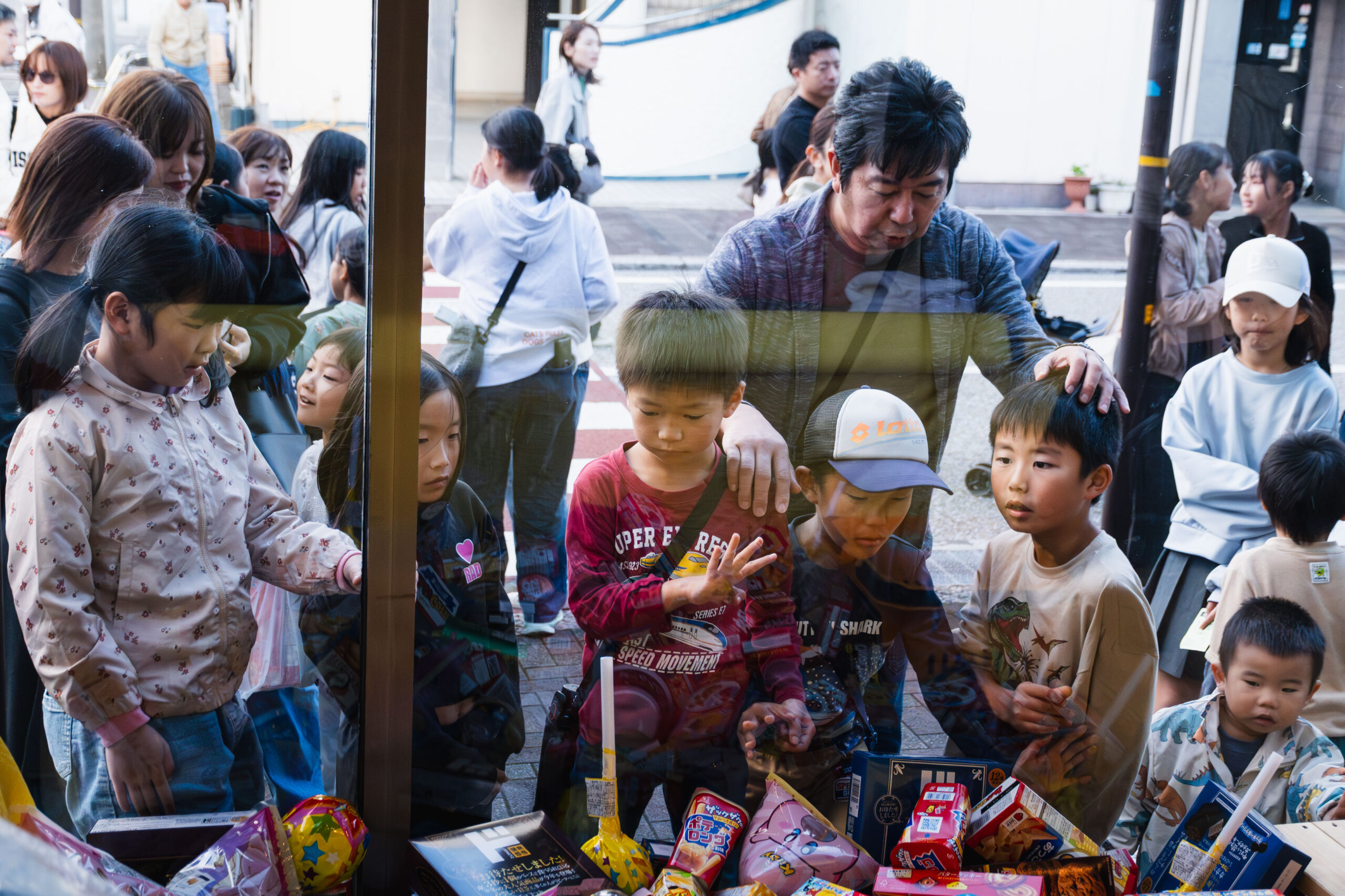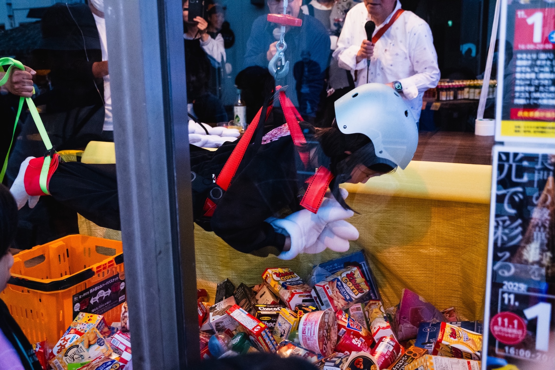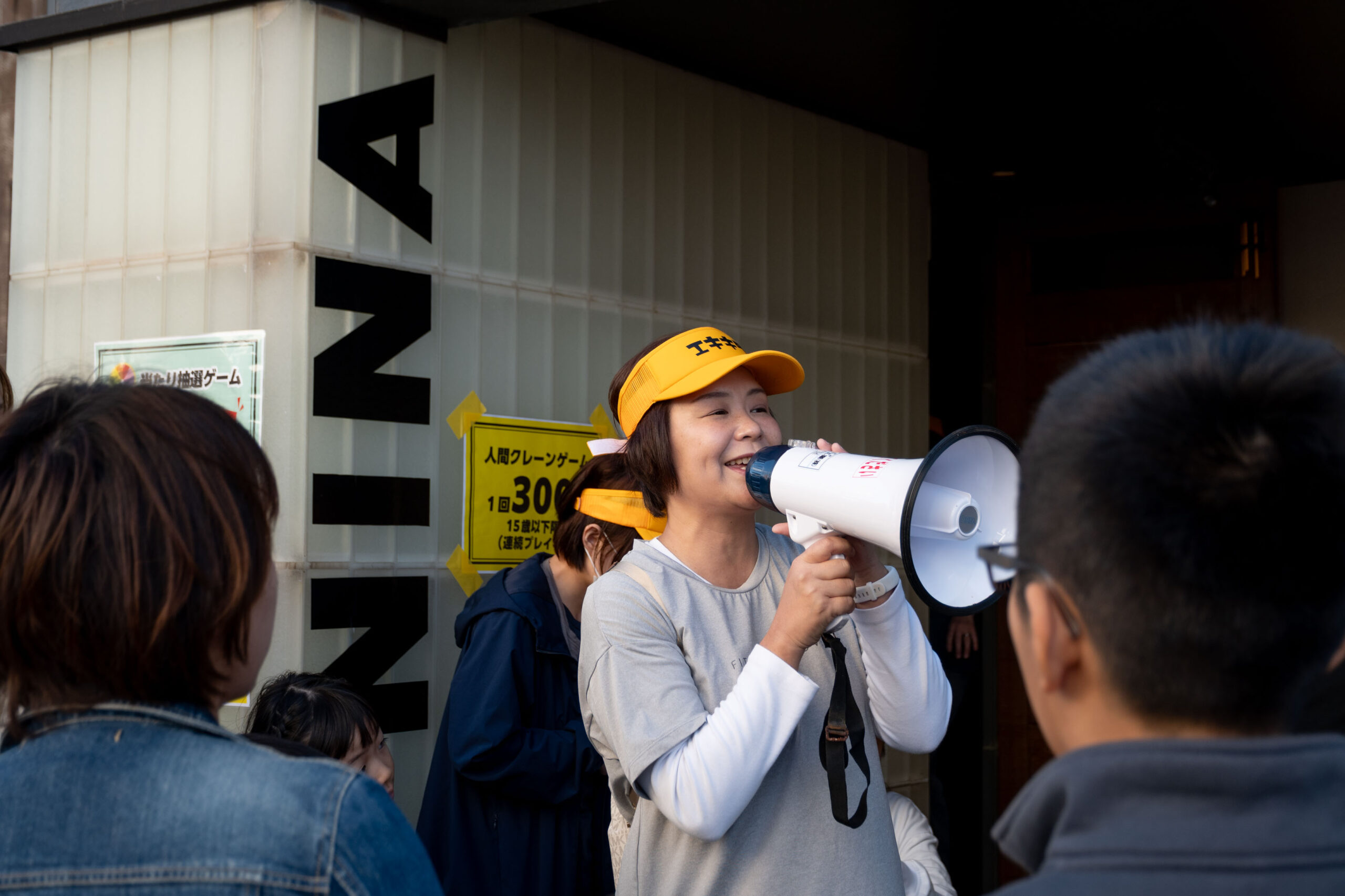 空くじなしの「イルミネーション千本くじ」や、自らがクレーンのアームとなって景品をつかむ「人間クレーンゲーム(15歳以下対象)」が行われ、受付開始前からたくさんの子どもたちが列を作っていました。