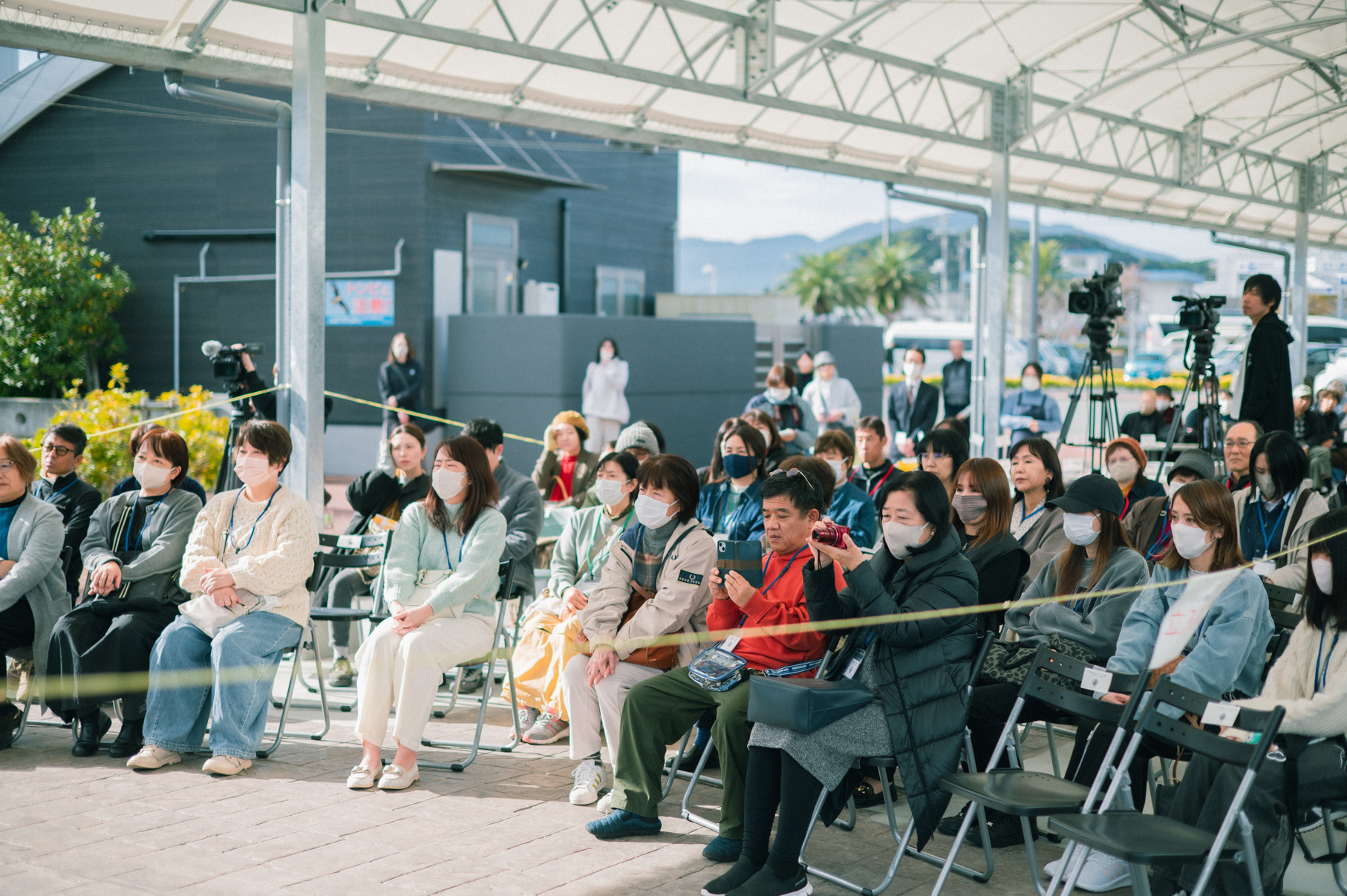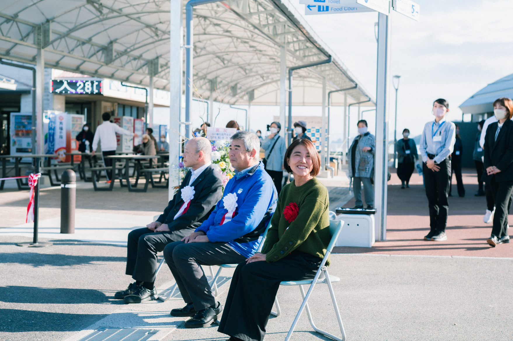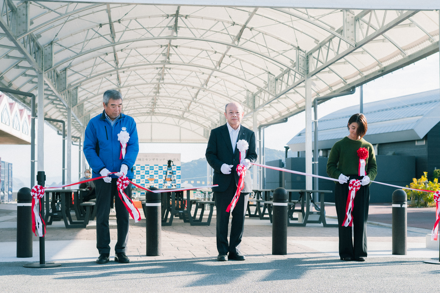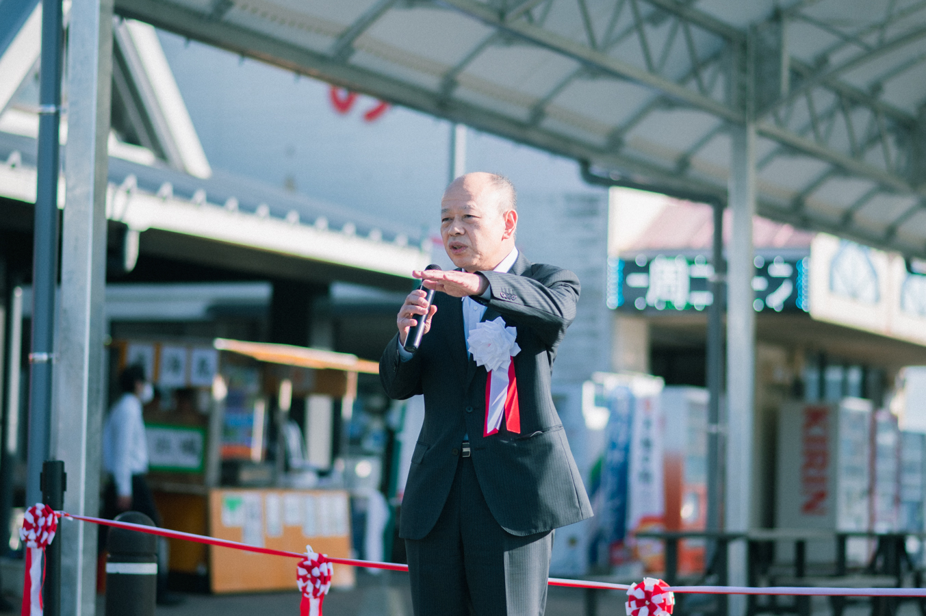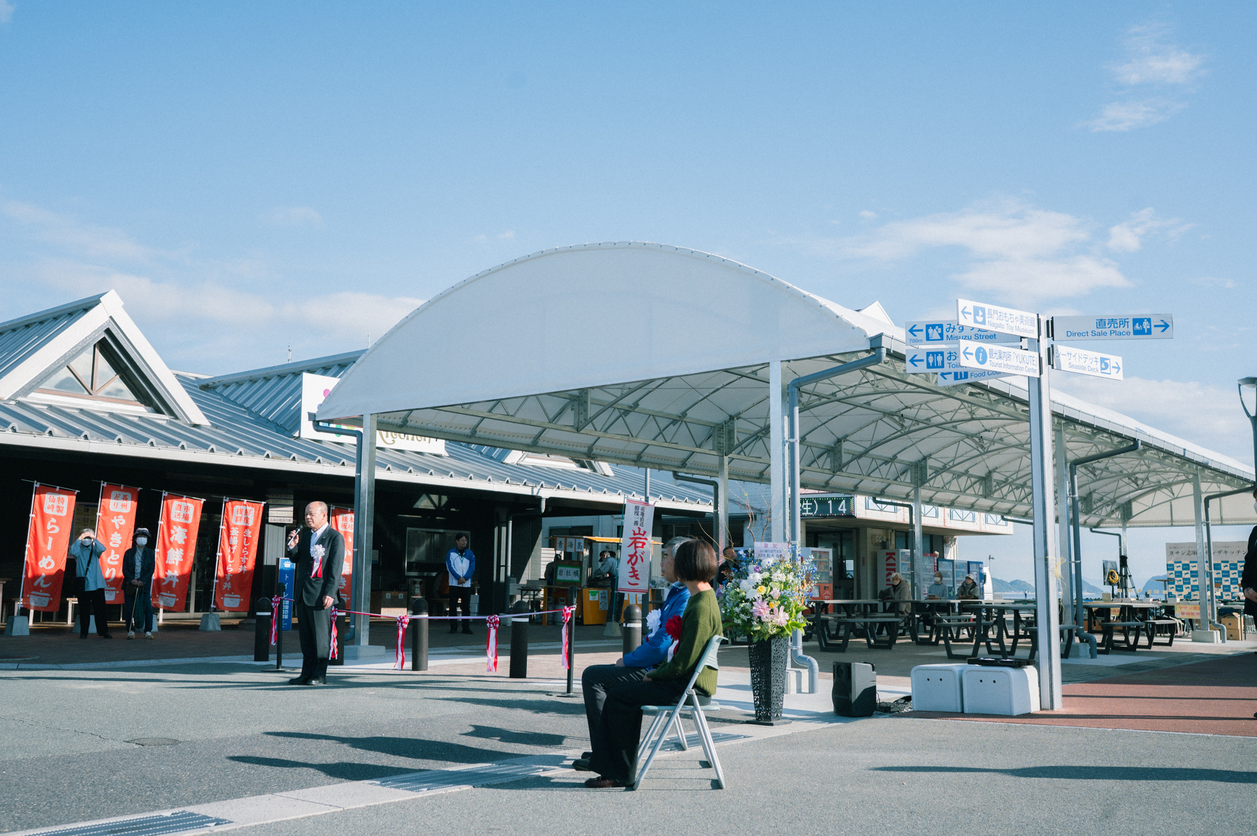 この日のイベントは「テント広場」のお披露目からスタート。道の駅を運営する「ながと物産合同会社」の代表である長門市の大谷副市長が挨拶し、テープカットが行われました。