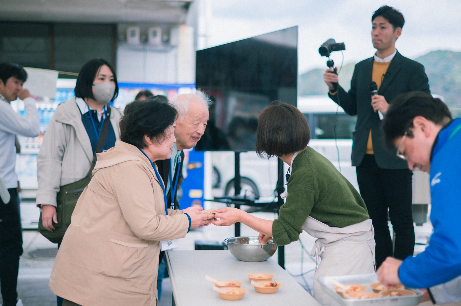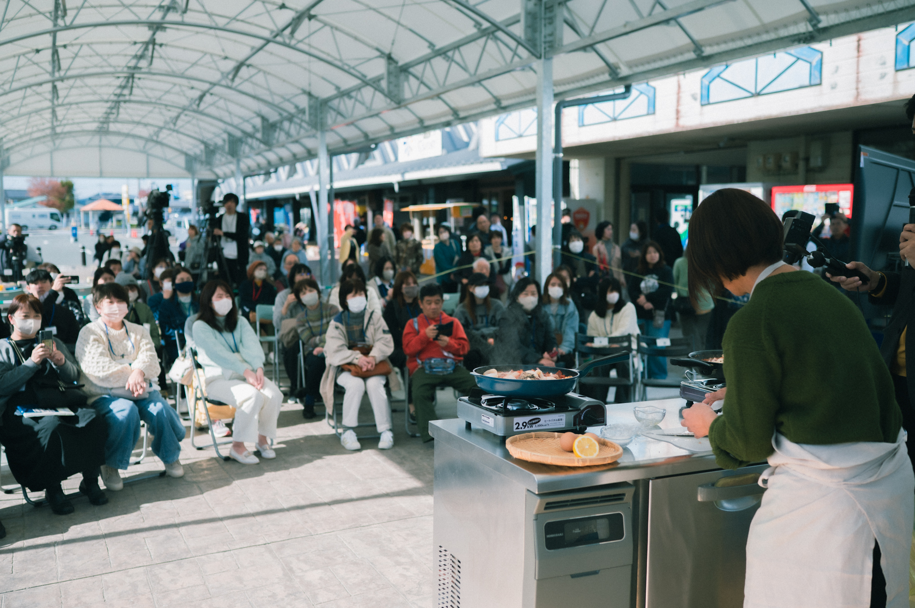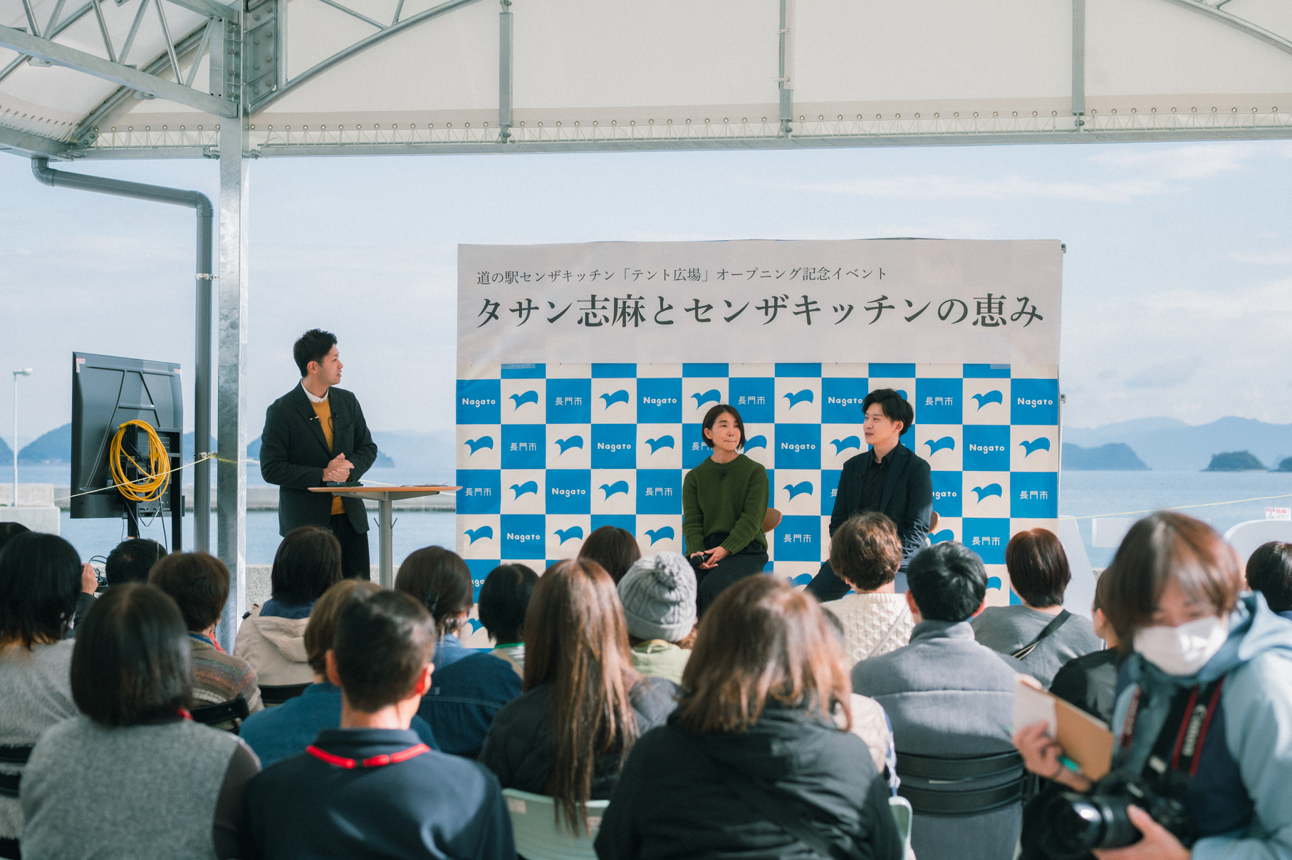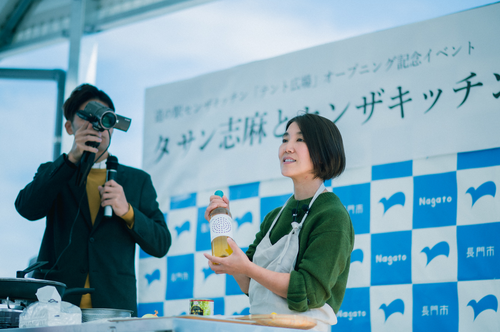今回、「道の駅センザキッチン」の新たな憩いの場所「テント広場」のオープンを記念して、トークイベントや「仙崎ぶとイカ」など地元食材を使った料理のデモンストレーションが行われました。