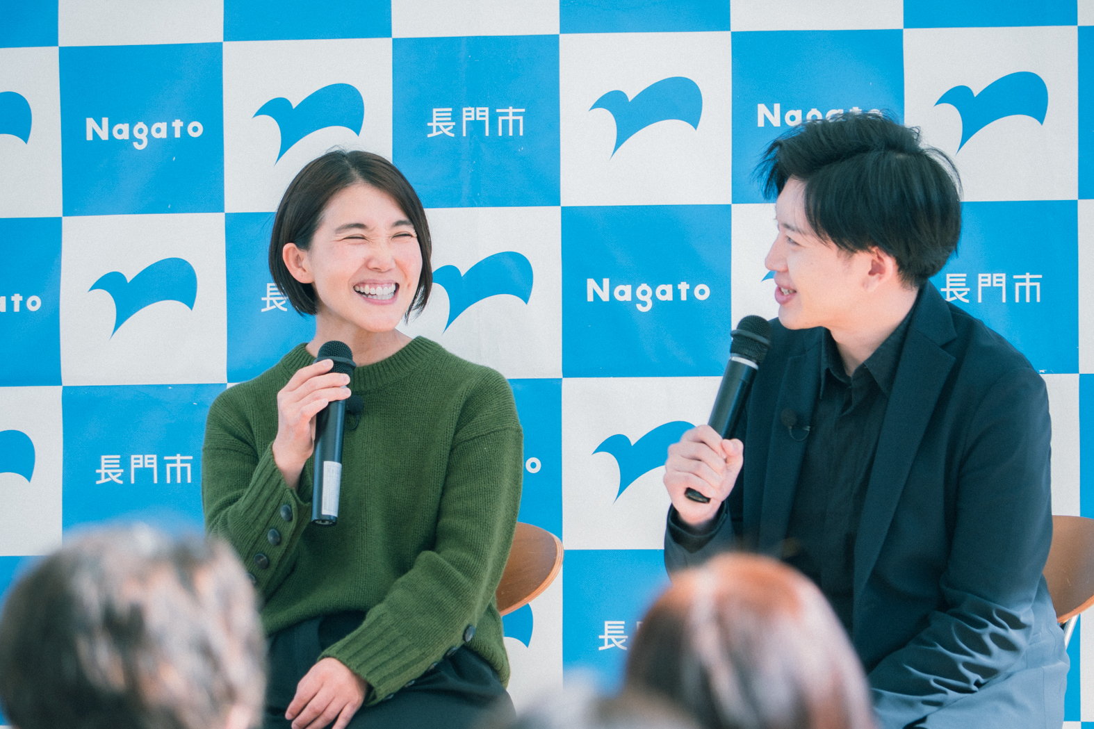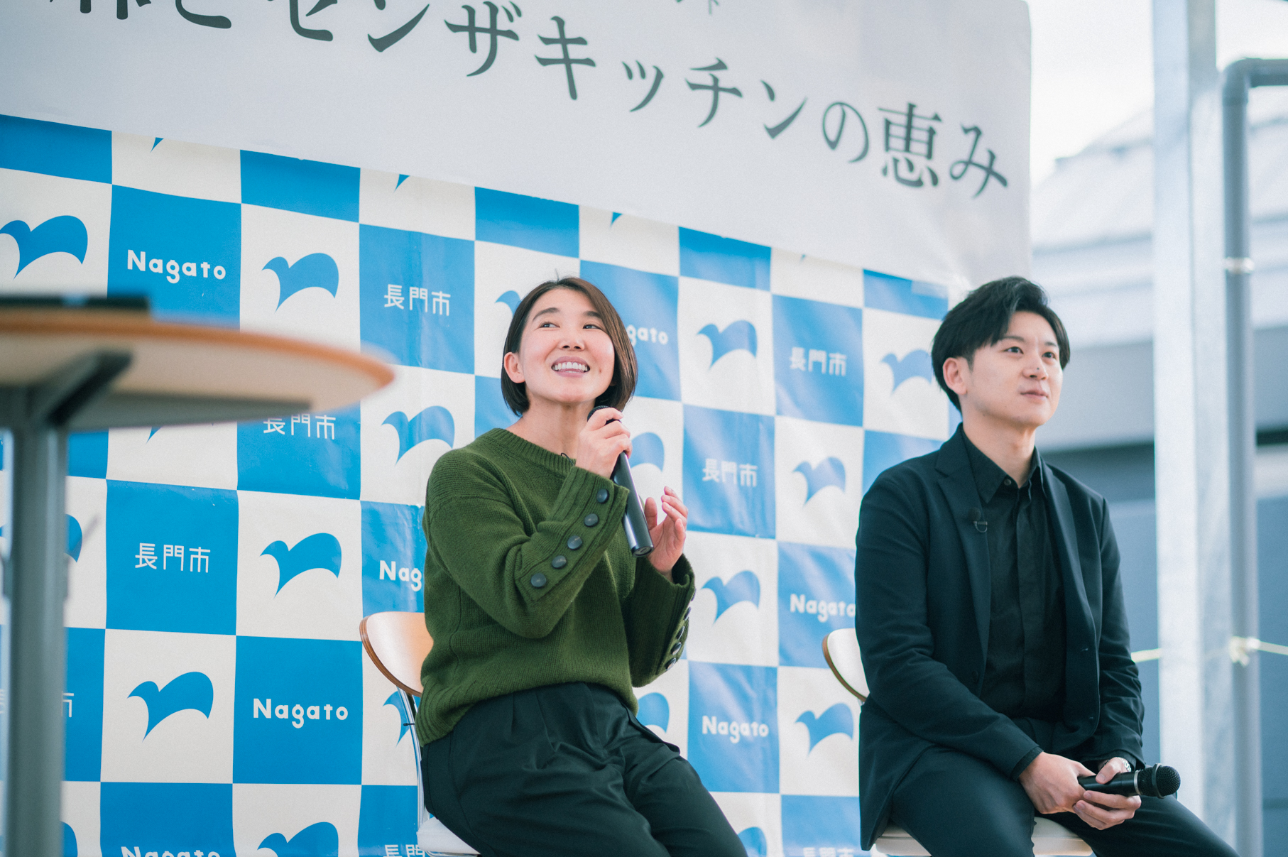 式典後はトークショーを開催。タサン志麻さんと地元仙崎の飲食店「和食処 きらく」から白石迅さんが登壇しました。