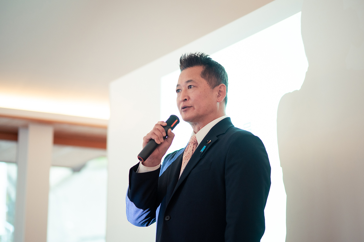 △協賛者として挨拶を行った株式会社 YMFG ZONE プラニングの藏重嘉伸代表取締役