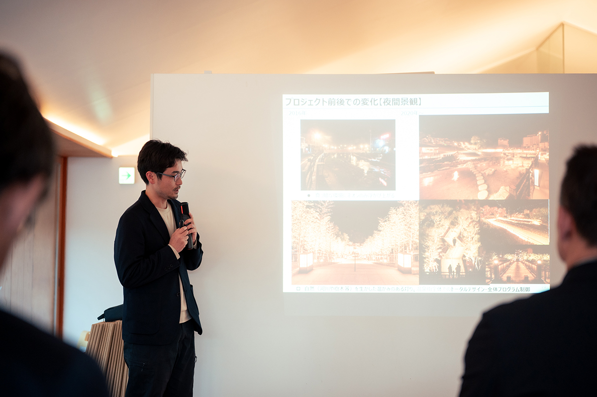 △企画説明を行う長門湯本温泉まち株式会社の木村隼斗エリアマネージャー