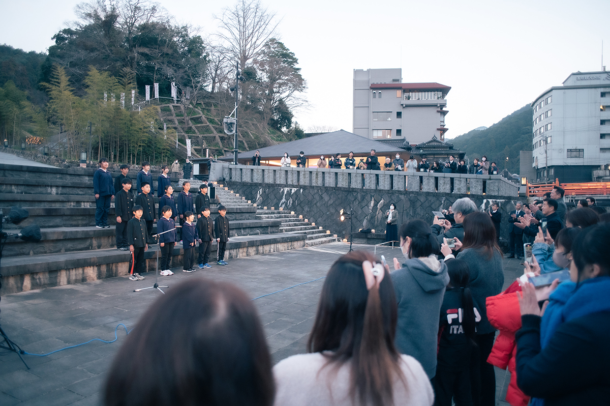セレモニーは来賓によるお祝いの言葉をはじめ、長門湯本温泉のまちづくりやライトアップイベントの趣旨説明、演出の見どころなどが話されます。