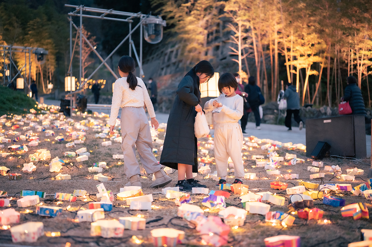 本日(2026年1月16日〔金〕)から3月8日(日)まで、長門湯本温泉でライトアップイベント「音信川うたあかり2026」が開催されます。「音信川うたあかり2026」は長門市仙崎出身の童謡詩人・金子みすゞさんの作品をモチーフにしたライトアップを温泉街で行う催し。本日はイベントのスタートを記念して、長門湯本温泉の立ち寄り湯「恩湯」にてオープニングセレモニーが行われました。