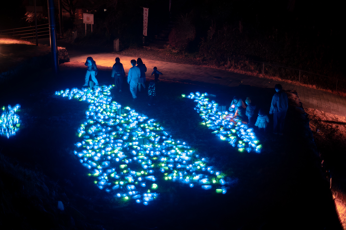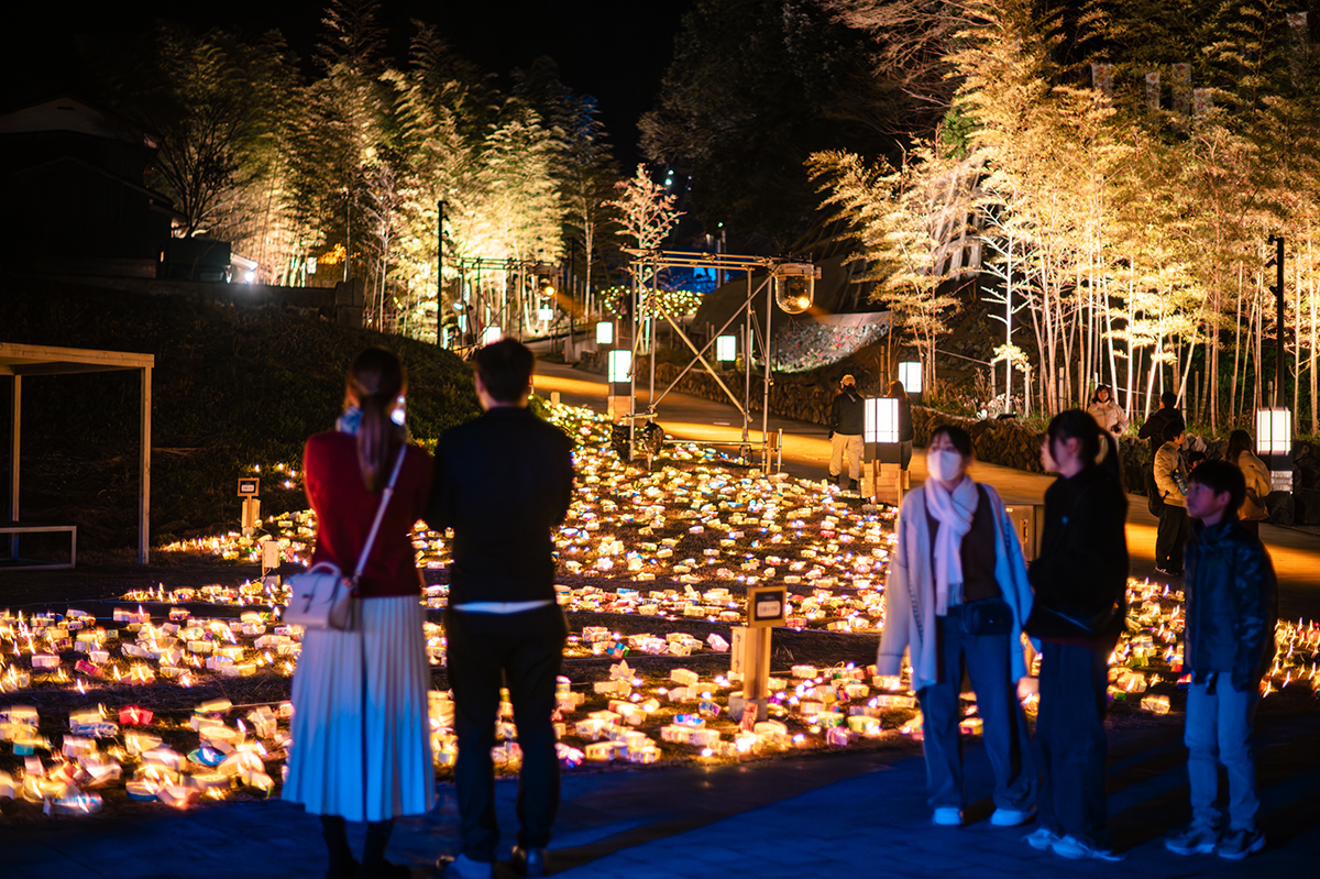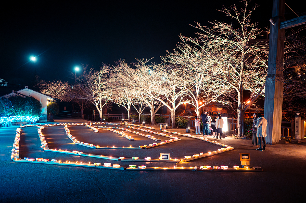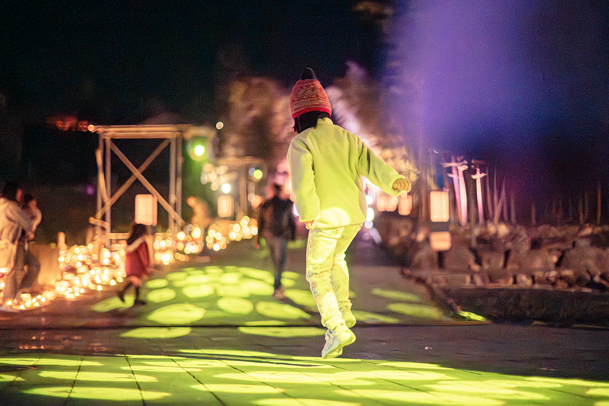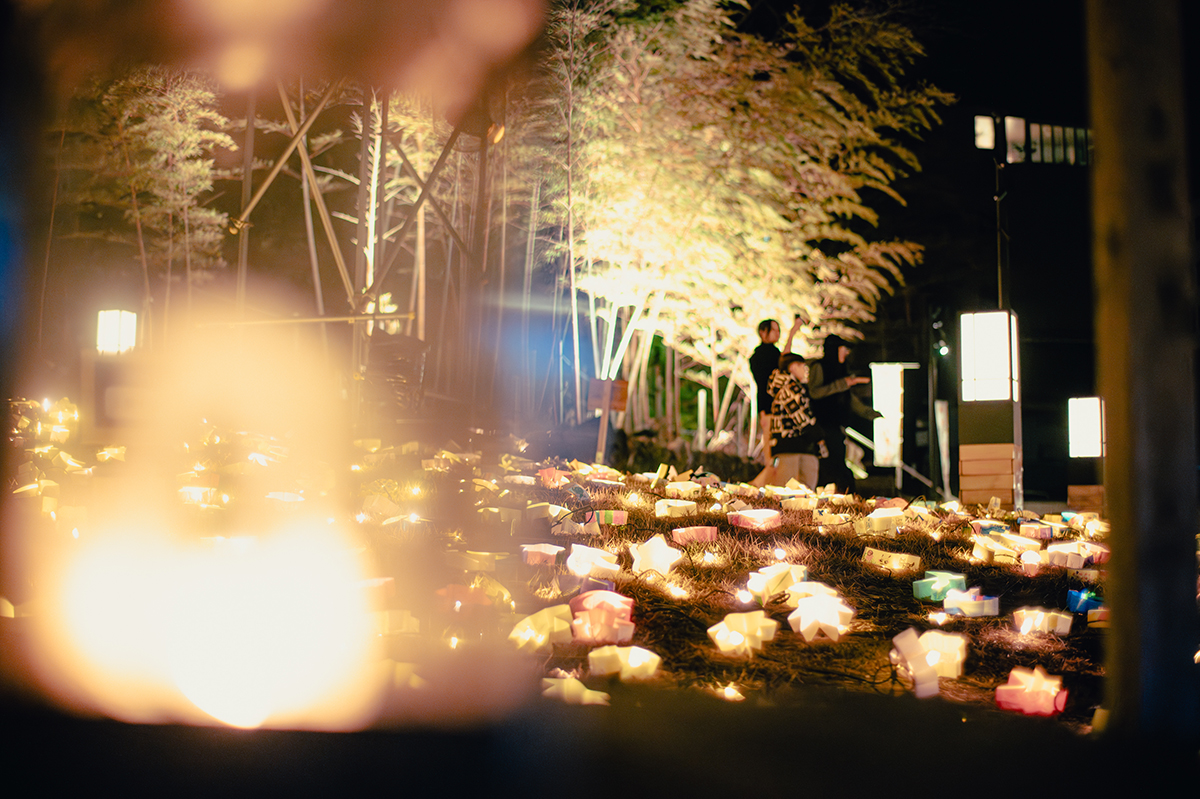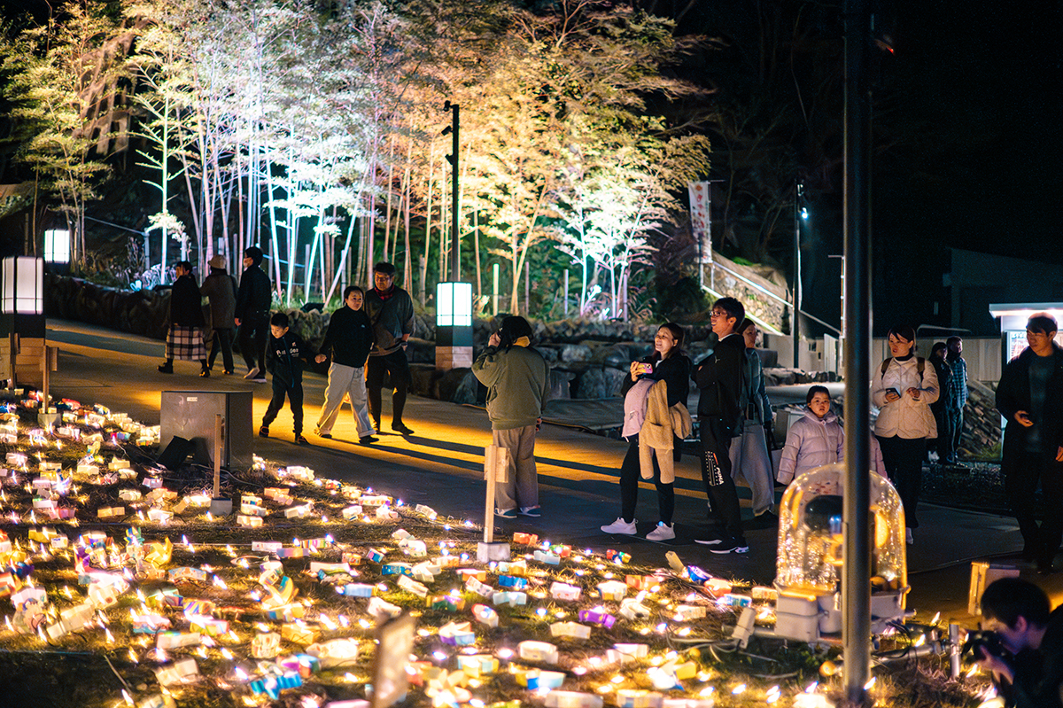 2018年からはじまった「音信川うたあかり」も今年で8回目。長門市出身の童謡詩人・金子みすゞの作品をテーマに、さまざまな演出の照明が温泉街を照らします。